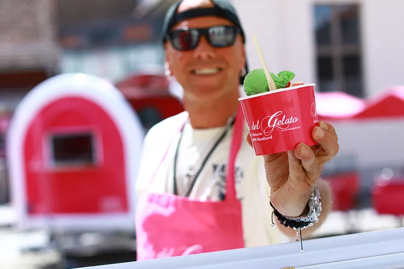 Unser Eis entsteht nach italienischer Rezeptur in original italienischen Eismaschinen – cremig, frisch und voller Geschmack. Was einst exklusiv für das Lindencafé gedacht war, ist heute fester Bestandteil unseres Caterings in ganz Berlin & Brandenburg. Ob kleine Gartenfeier oder große Messe: Redo del Gelato bringt das Eis zu Ihren Gästen – mit Vitrine, Eiswagen oder Foodtruck.
