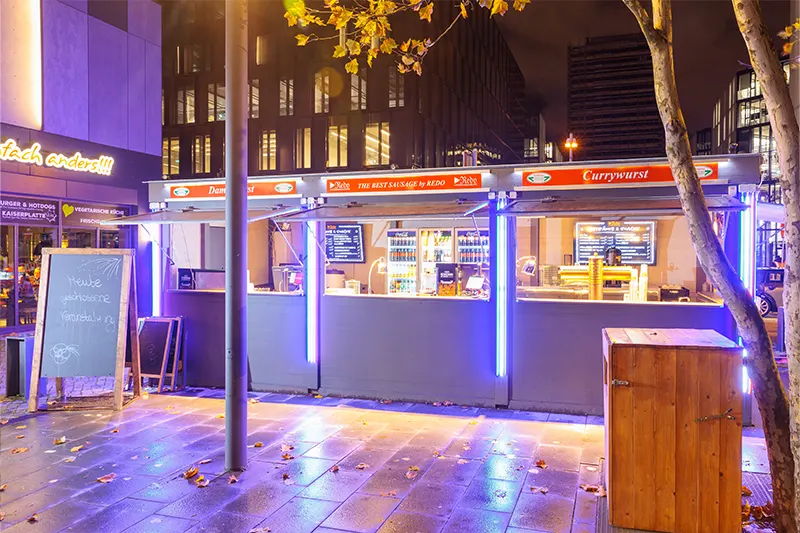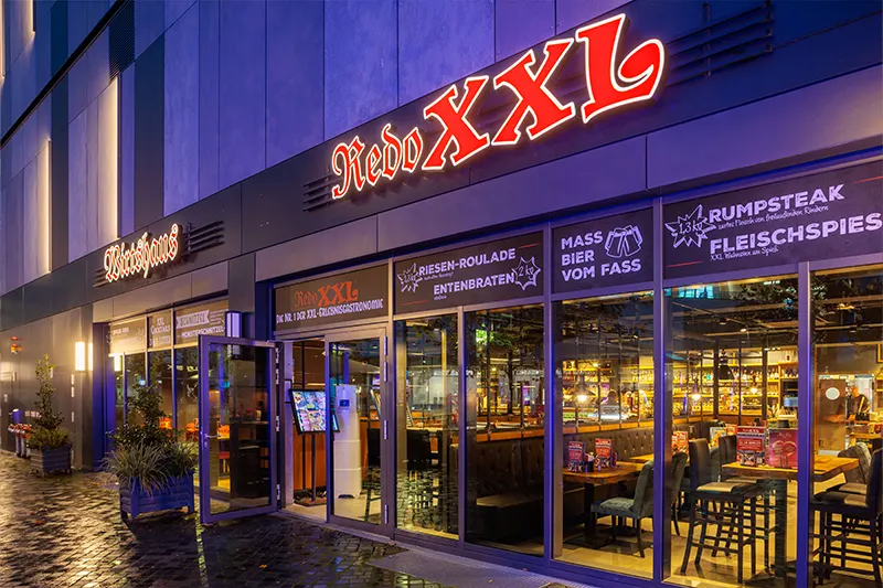 Serviert werden hier überdimensionale Klassiker in echter Redo-Atmosphäre: XXL-Burger, Schnitzel-Türme, Currywurstplatten und mehr. Im modernen Innenbereich oder auf der belebten Außenterrasse geht’s nicht nur ums Essen, sondern um das ganze Drumherum. Stimmung satt – Satt gehen alle!